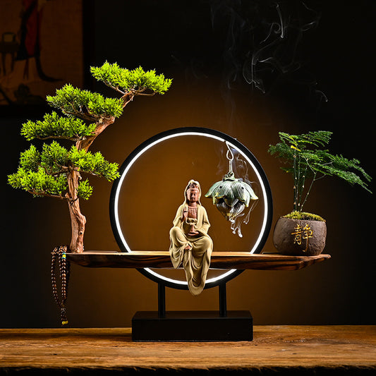 Ceramic Lamp Ring Incense Burner Lotus Heart Guanyin