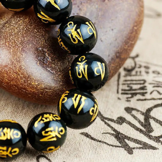 Black Obsidian Onyx Bracelet Six Words Buddhist Prayer
