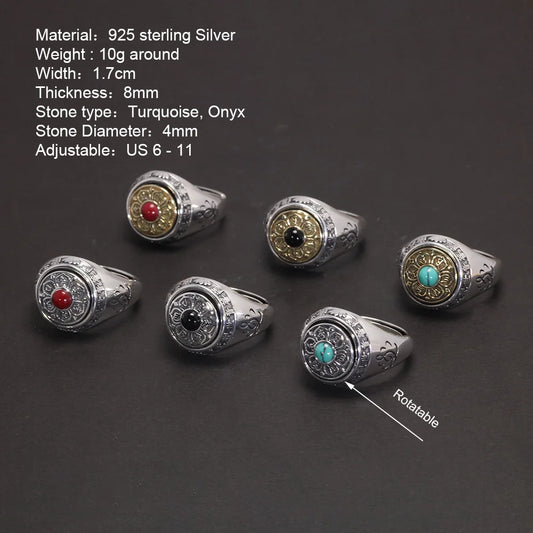 100 % 925er Silber, tibetischer Ring mit sechs Worten für Männer
