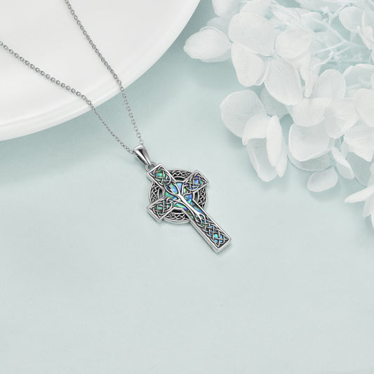 Anhänger mit keltischem Abalone-Kreuz aus 925er-Sterlingsilber